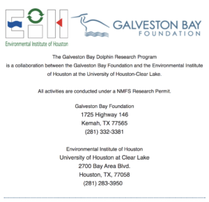 With these findings, we have scientific support to answer a question that we are asked often: "When can I see dolphins in upper Galveston Bay?" Unless heavy precipitation occurs and lowers salinity, June through September are the months of the year when you are most likely to see dolphins in UGB. But, you may be lucky enough to see them any time!